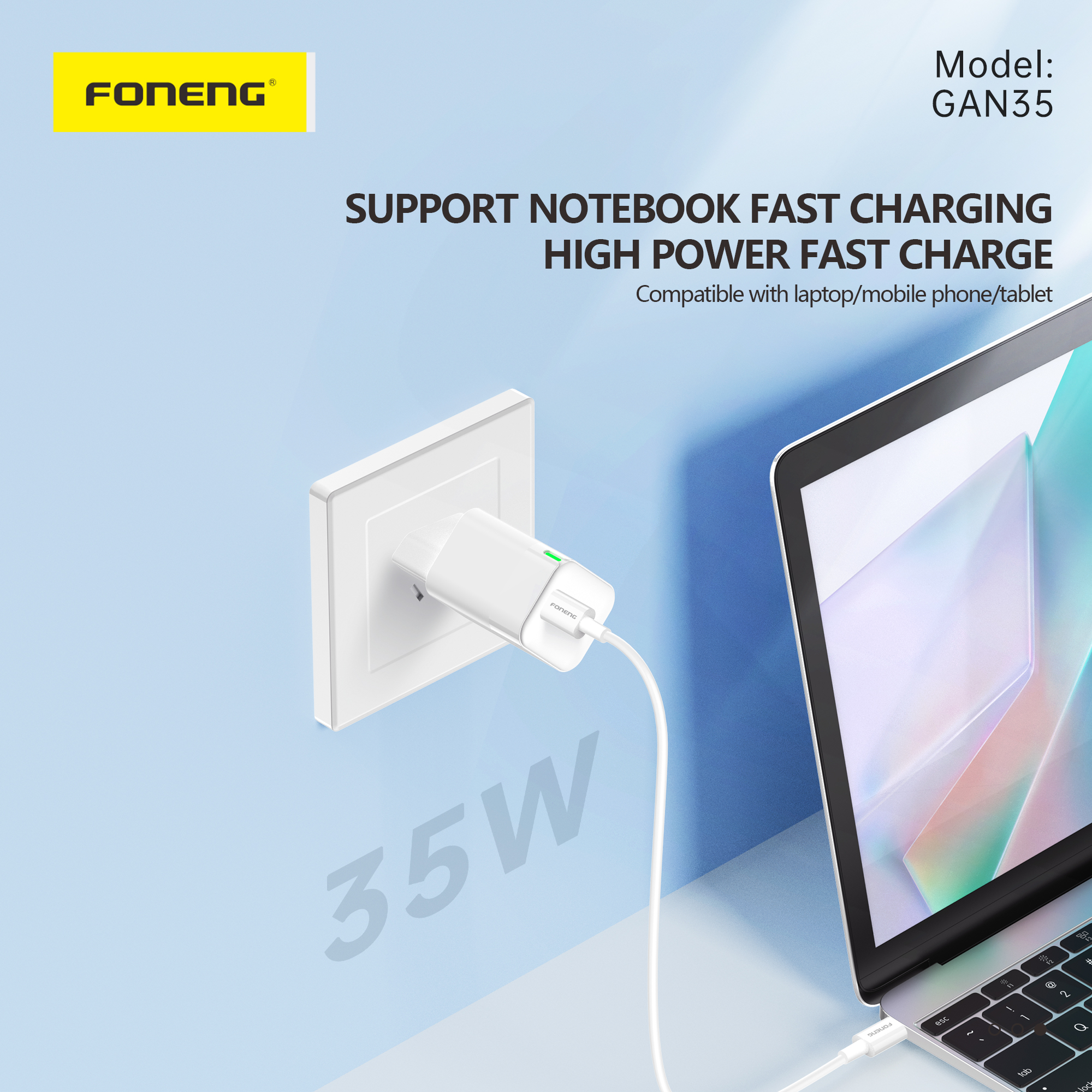 Foneng GAN35 USB-C 2-Port GaN Charger (35W)