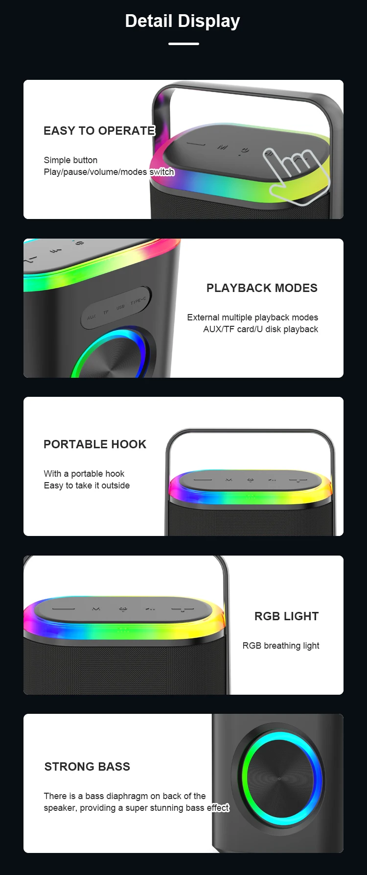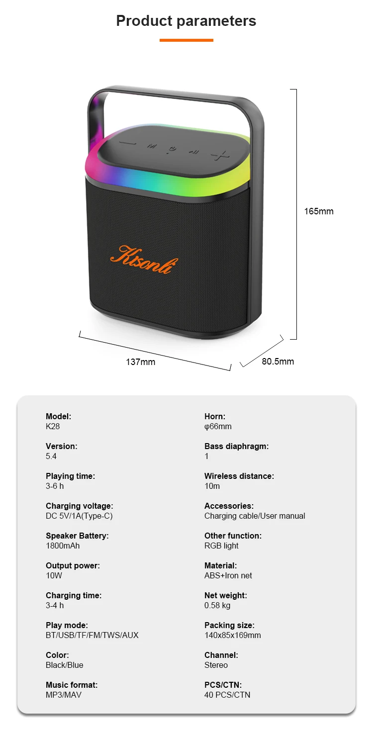 Kisonli K28 Portable Wireless Speaker RGB LED Lighting