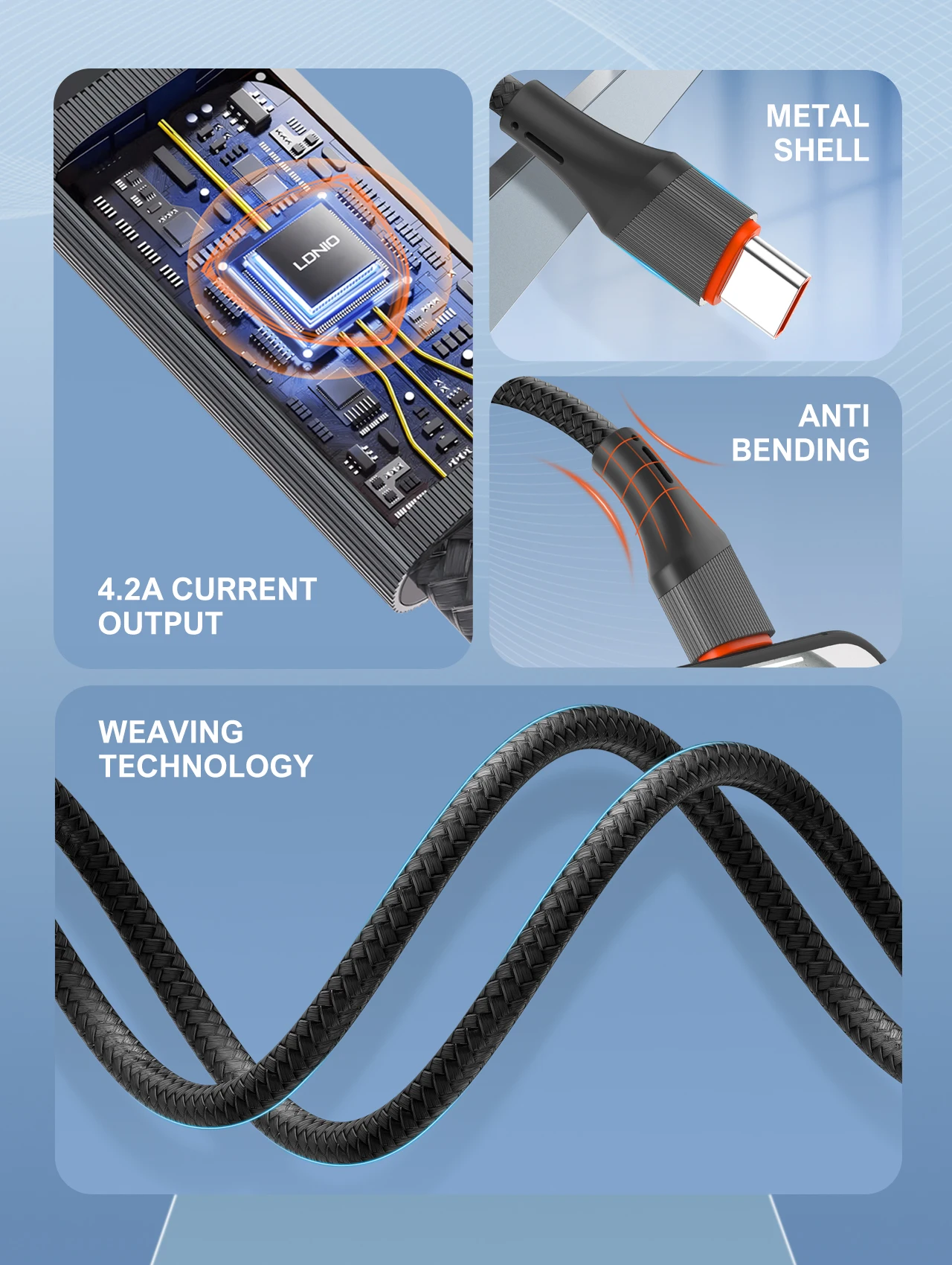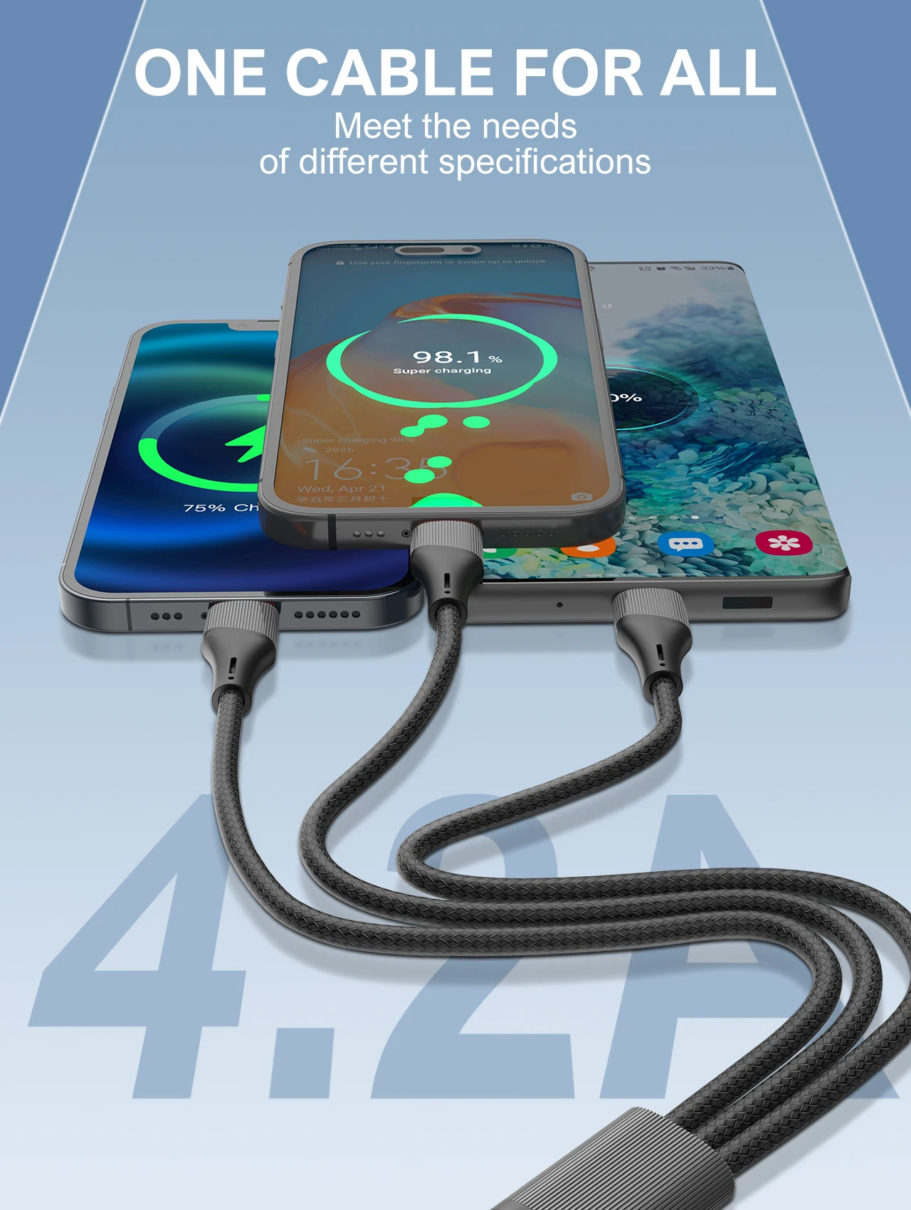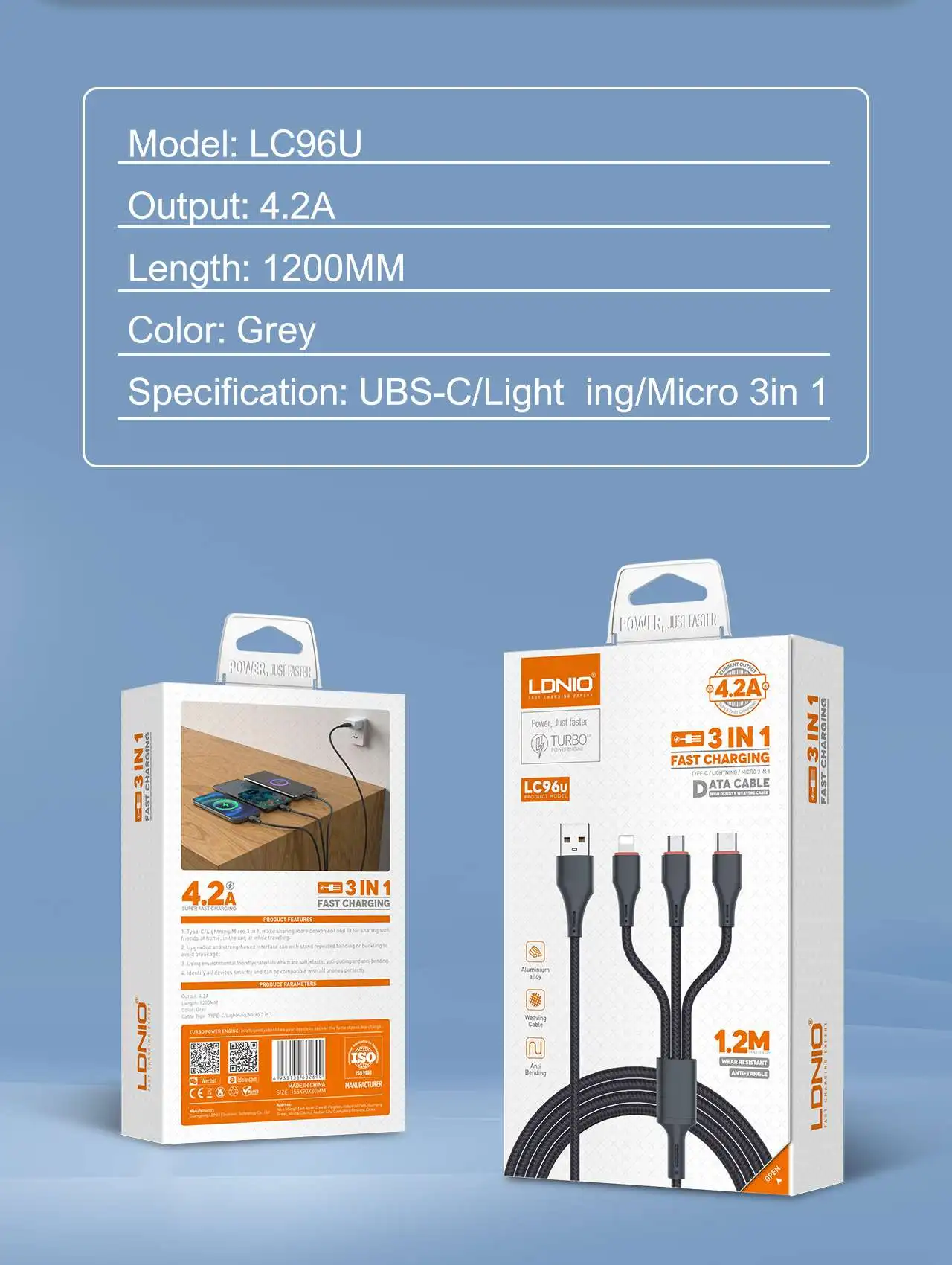 ldnio 1.2M 5V/4.2A 3In1 Cable Micro USB Type-C Sync Charger Fast Charging 1.2m Data Cable for Mobile Phones Power Banks Smart