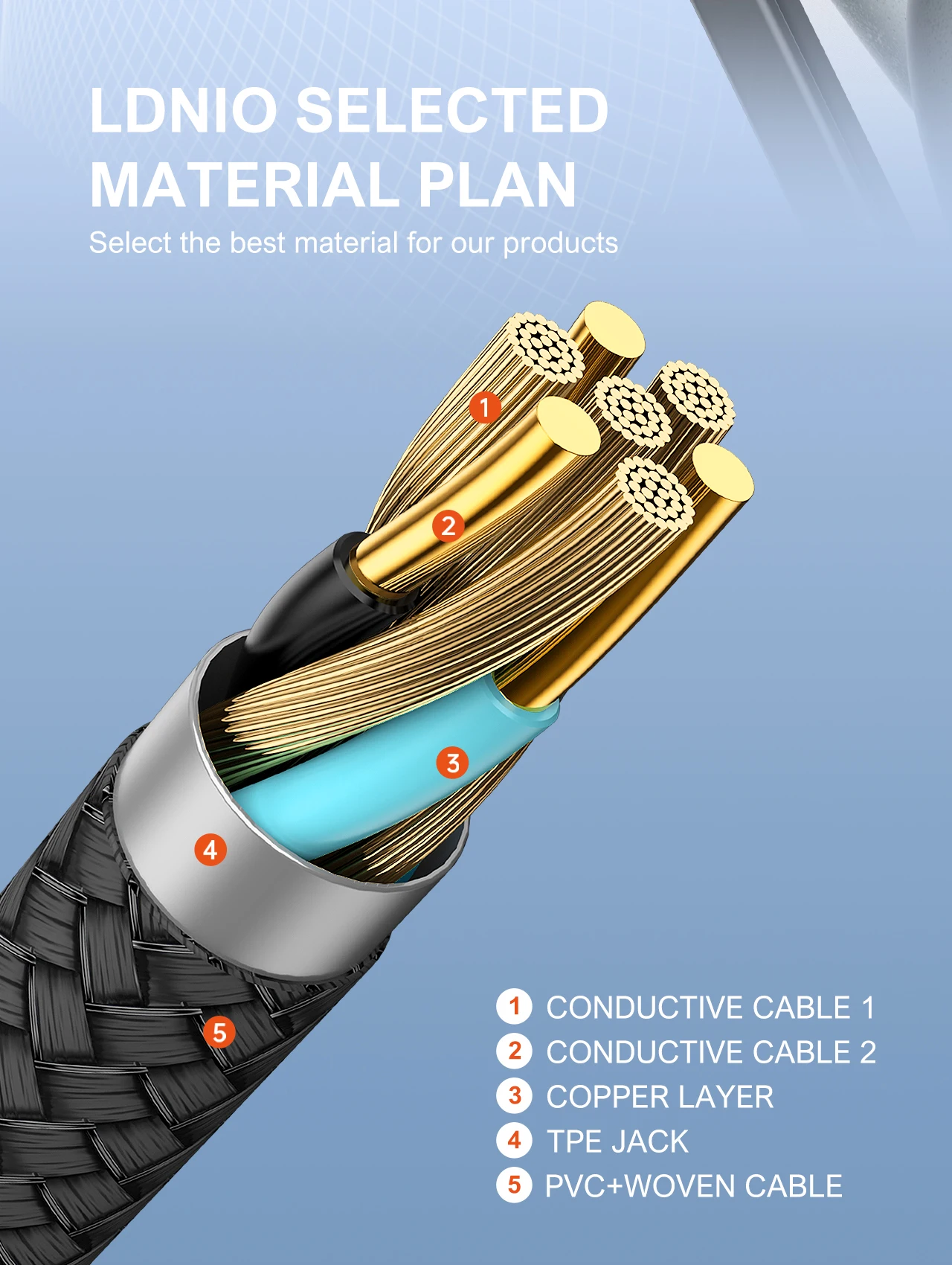 LDNIO LS241Q Automatic Power-off Charging Cables Type-c Micro Lighting 1M 50W Fast Charging Data Cable