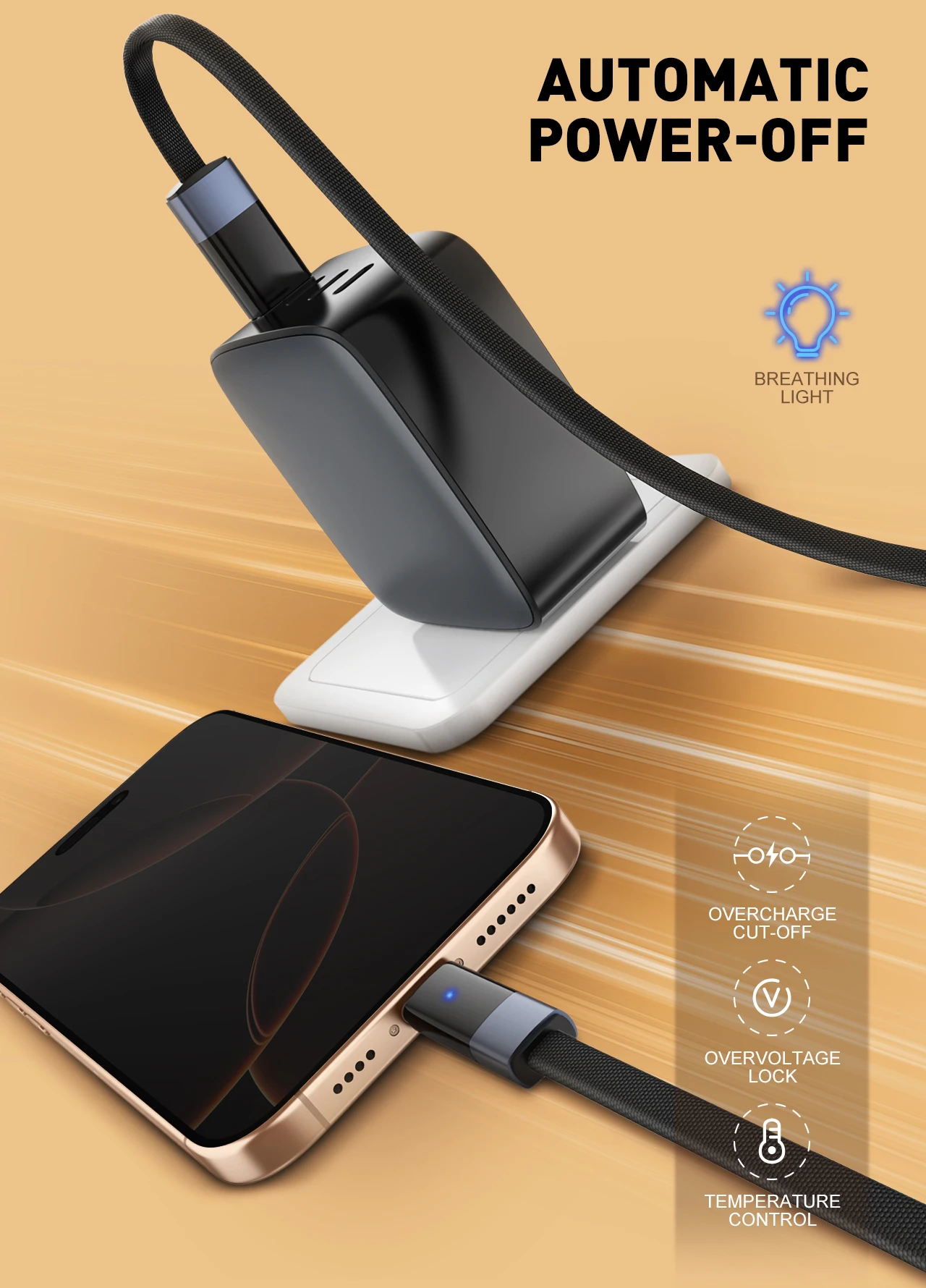 LDNIO LC23i Magnetic Storage Charging Cable USB C to Lighting Cable Fast Charge Data Sync Flat Braided Aluminum Alloy Portable