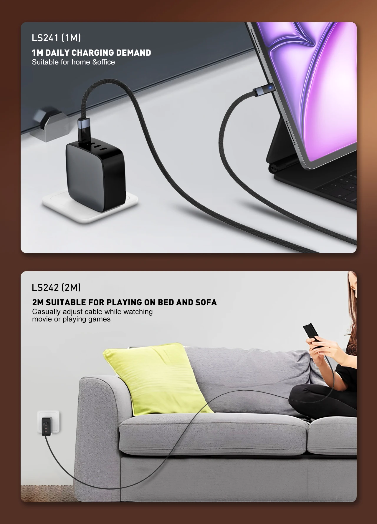 LDNIO LC241-100W Wholesale OEM 1m Type-C to Type-C Cable Support PD and QC Fast Charging Usb Data Cable for Phone
