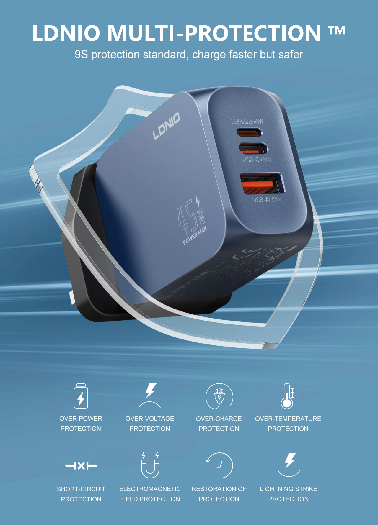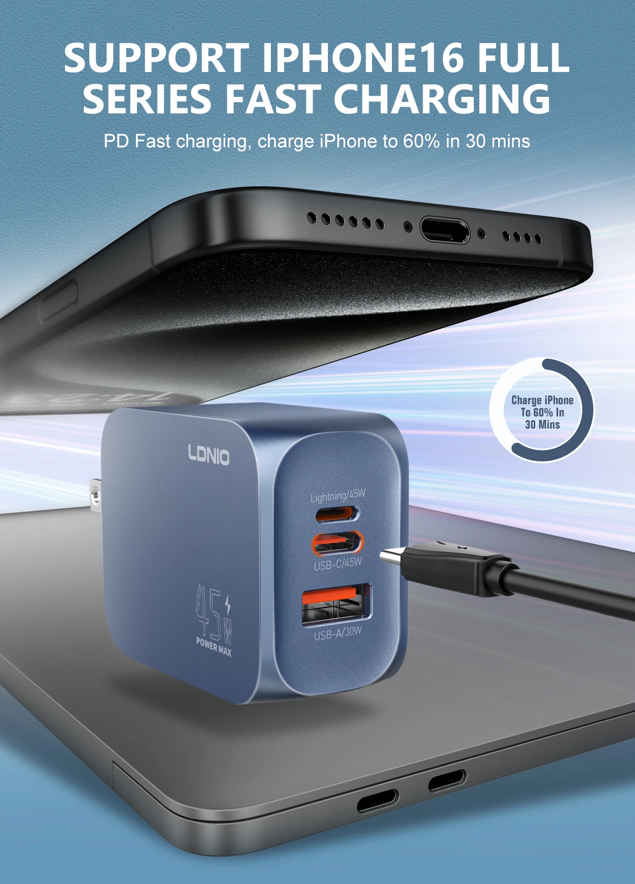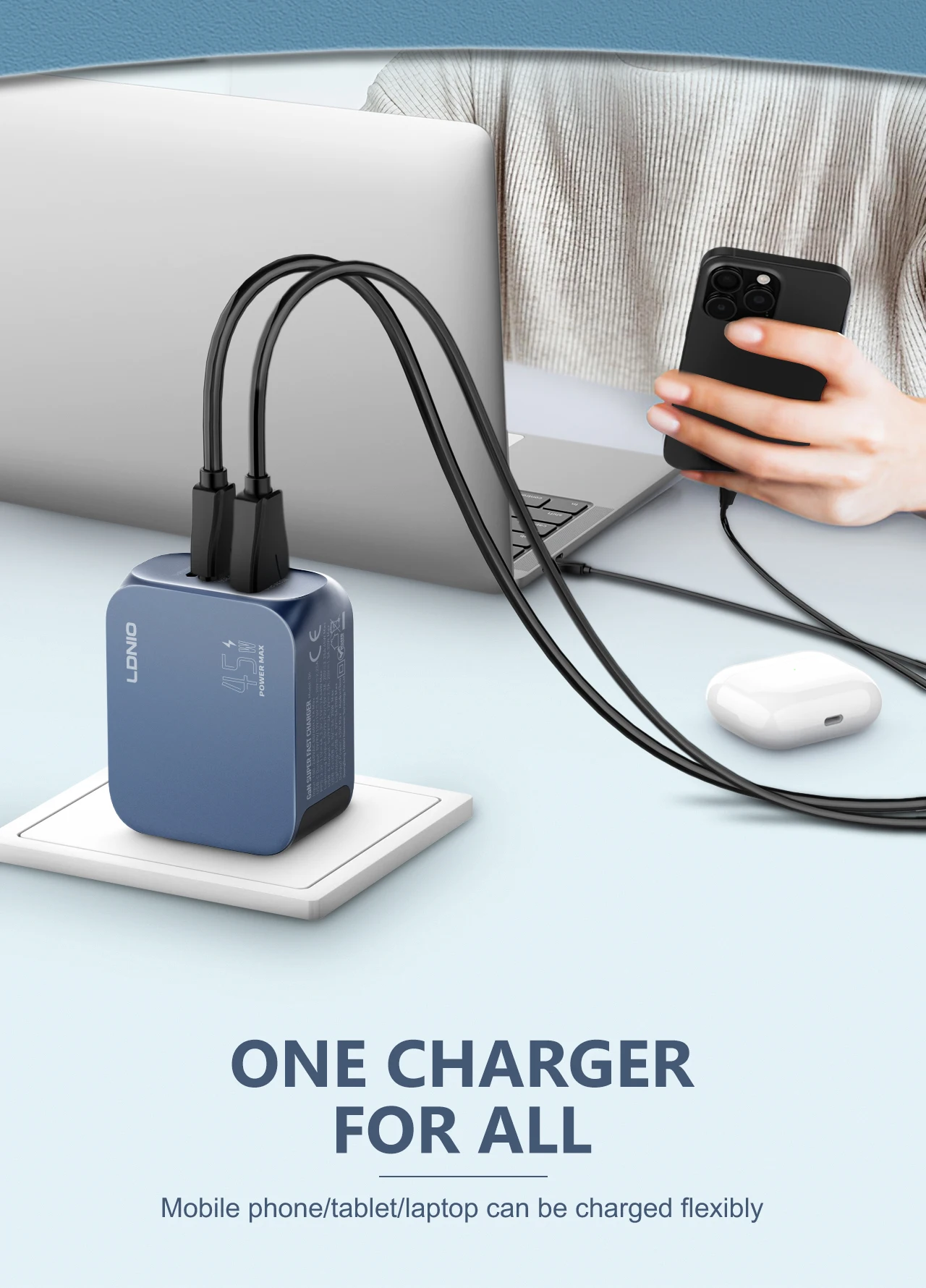 LDNIO Q6 45W GaN Multi Port Usbc Fast Mobile Charger Adapter Portable Charger for Cell Phone
